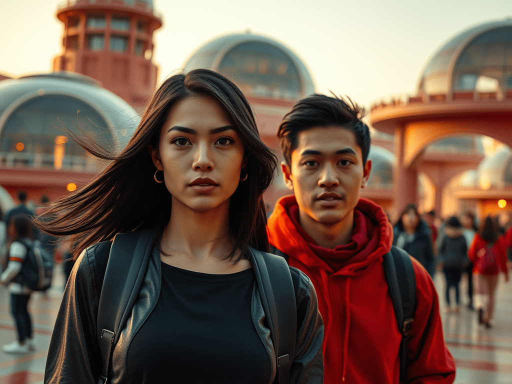 The atrium buzzed with the chaotic energy of orientation day. Beneath the sprawling glass dome of the Intergalactic University, streams of students navigated between mineral-blue walkways and holographic displays. Zara Novak stood off to the side, arms crossed, her gaze flicking across the room like a hawk sizing up its prey. Her restless energy crackled in the space around her, a sharp contrast to the serenity of Mars’ reddish glow filtering through the dome.